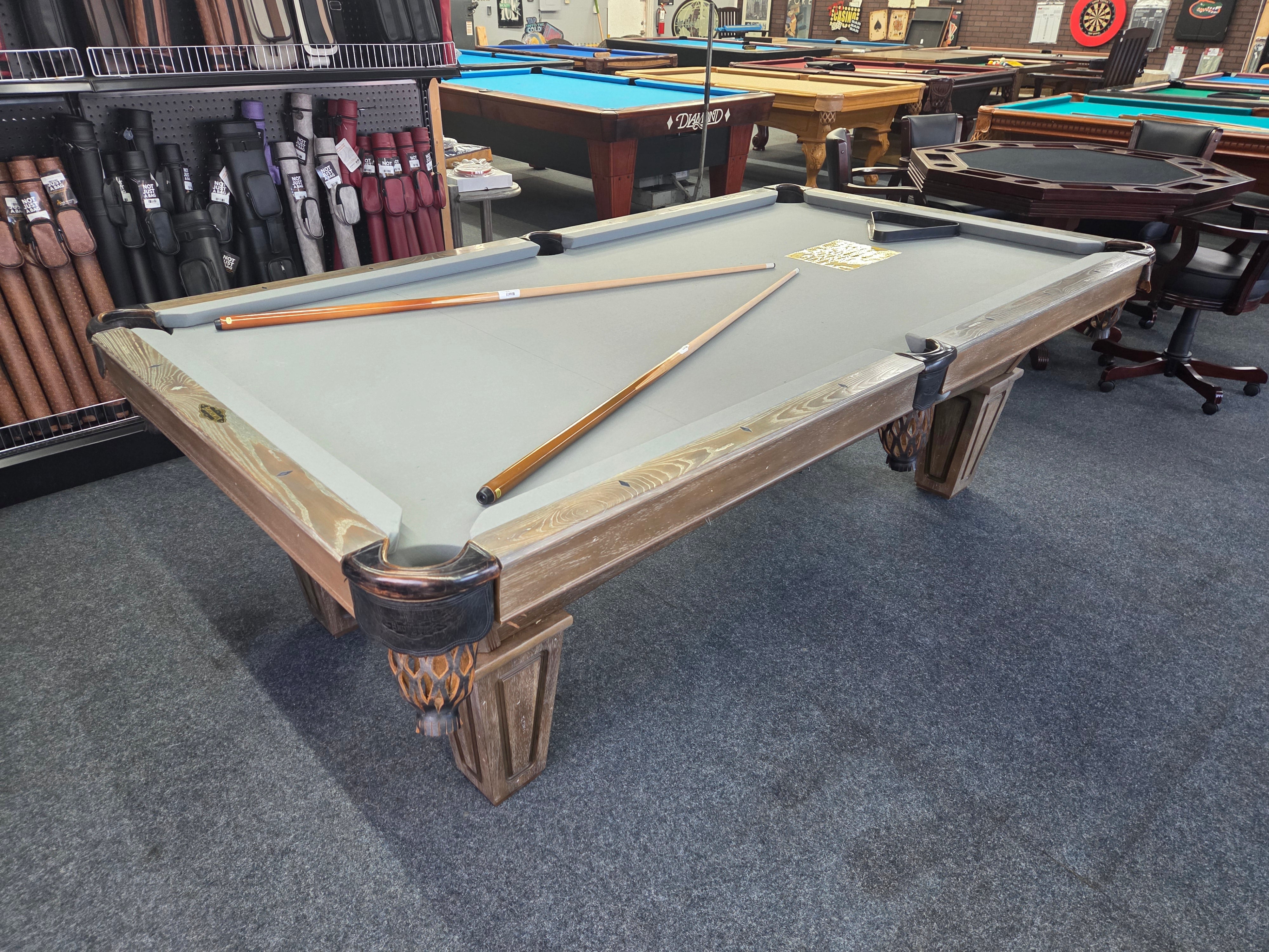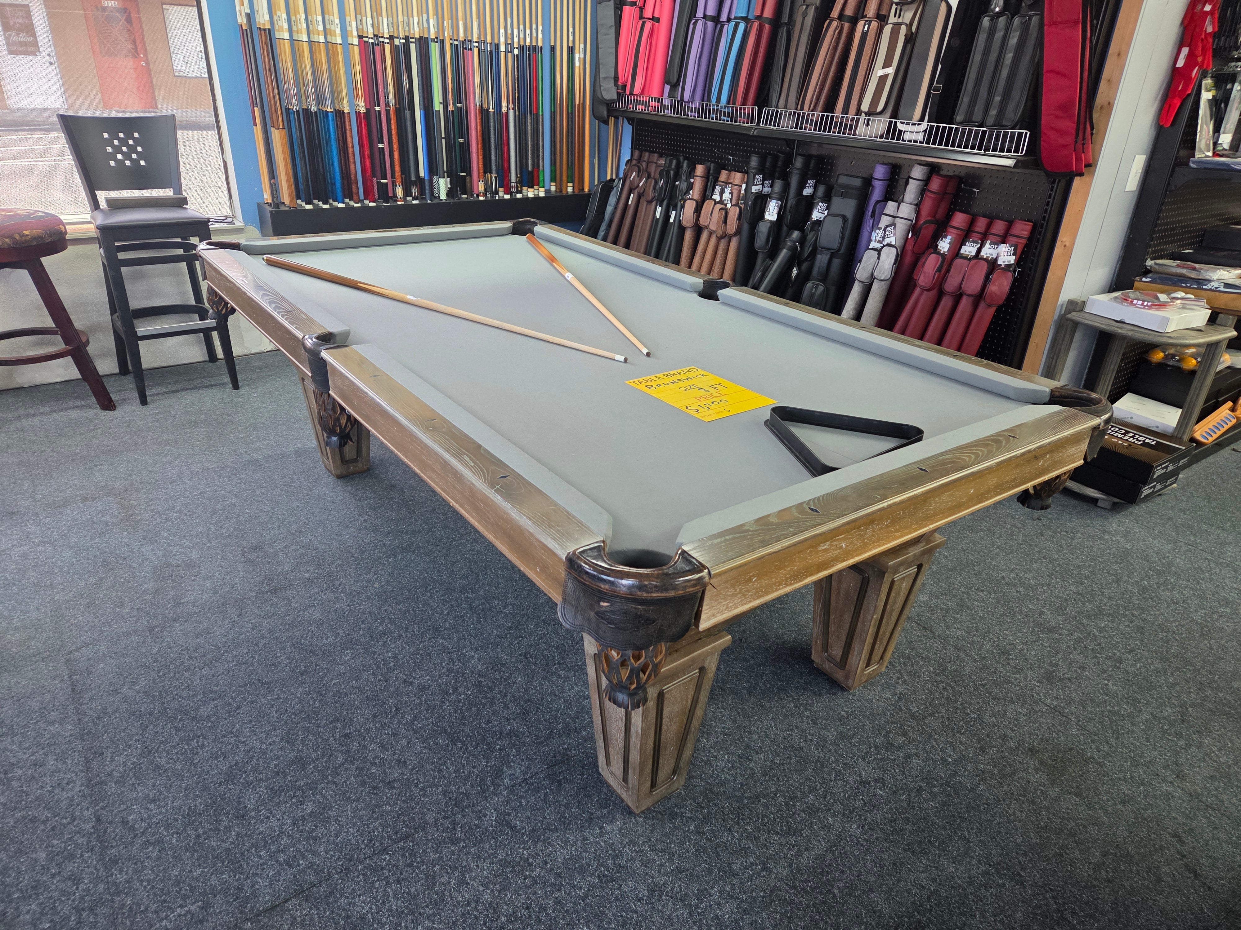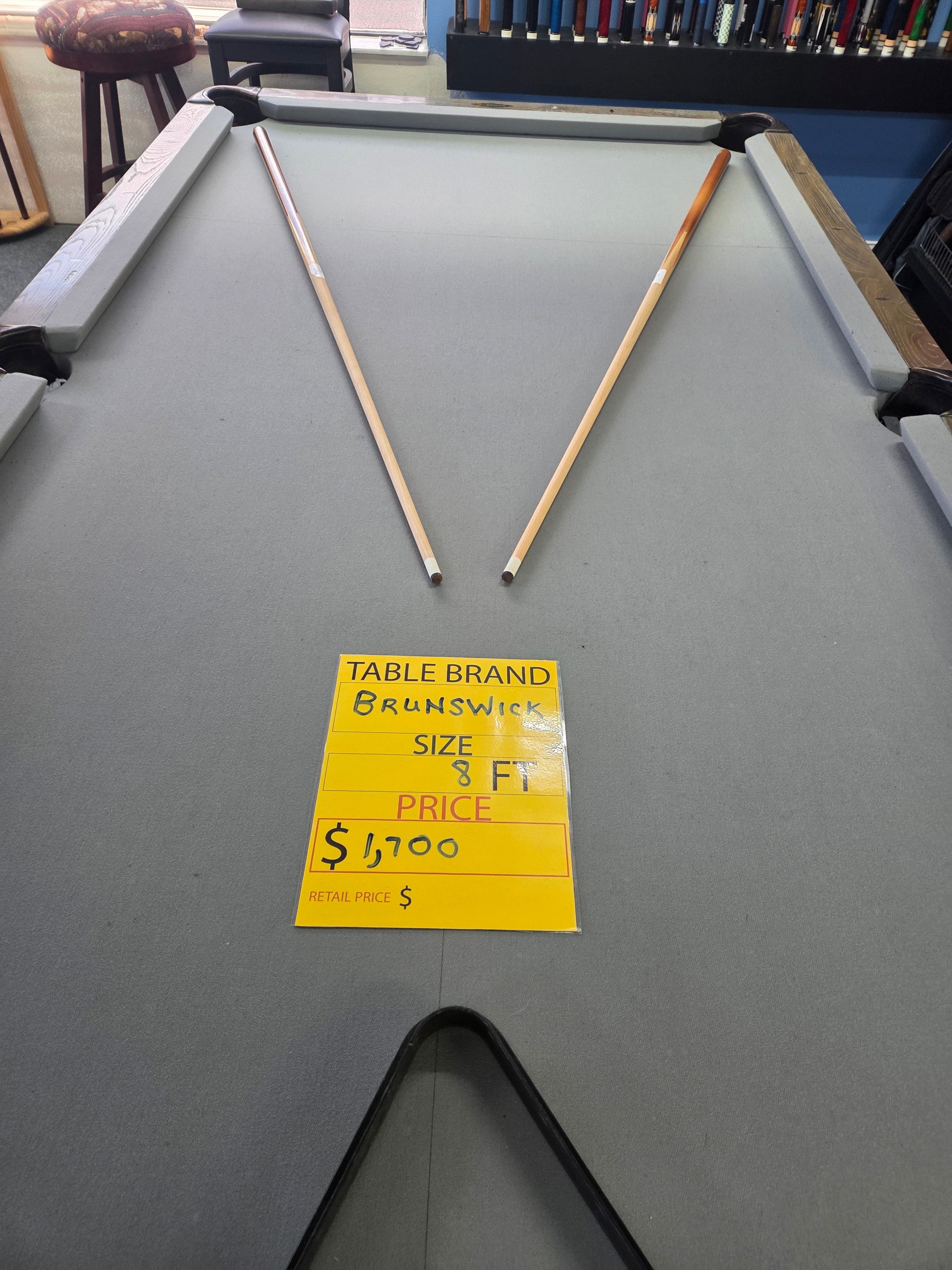 Used 8ft Brunswick pool table with shark grey cloth. This classic regulation-size table delivers consistent play and reliable construction, ideal for recreational rooms or establishments seeking dependable equipment. The shark grey cloth provides excellent ball response and durability. Pre-owned condition means exceptional value for players upgrading their setup or outfitting a new space without premium pricing. Inspect photos for wear details and contact us with questions about playability or specifications.